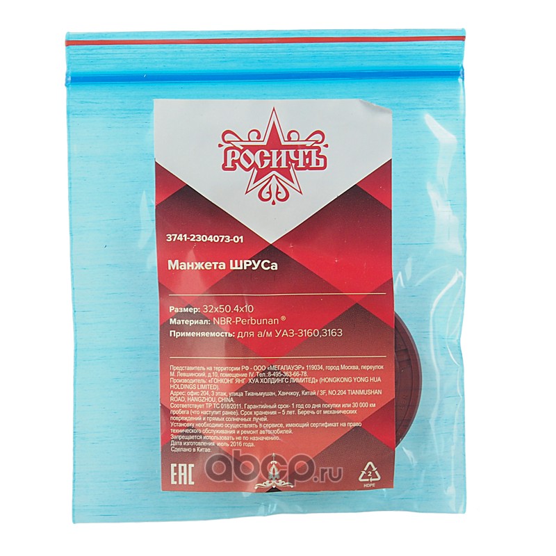 | РОСИЧЪ | 3741230407301 | Сальник УАЗ-3160,3163 ШРУСа 32х50.4х10 РОСИЧЪ | ||