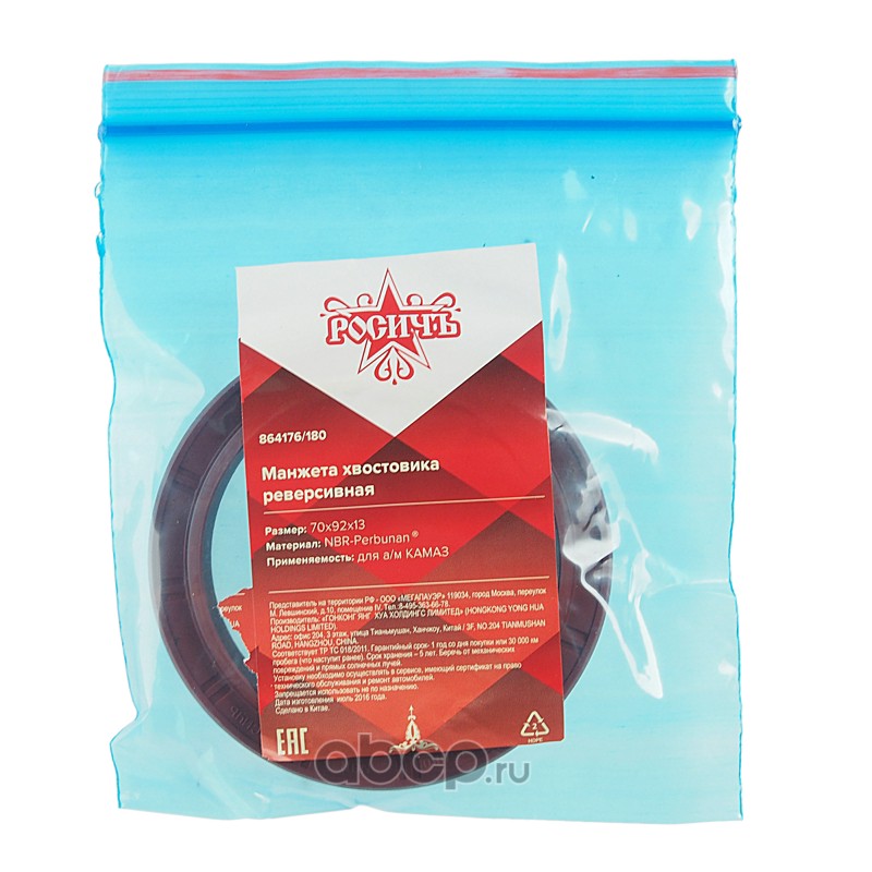 | РОСИЧЪ | 864176180 | Сальник КАМАЗ хвостовика реверсивный 70х92х13 РОСИЧЪ | ||