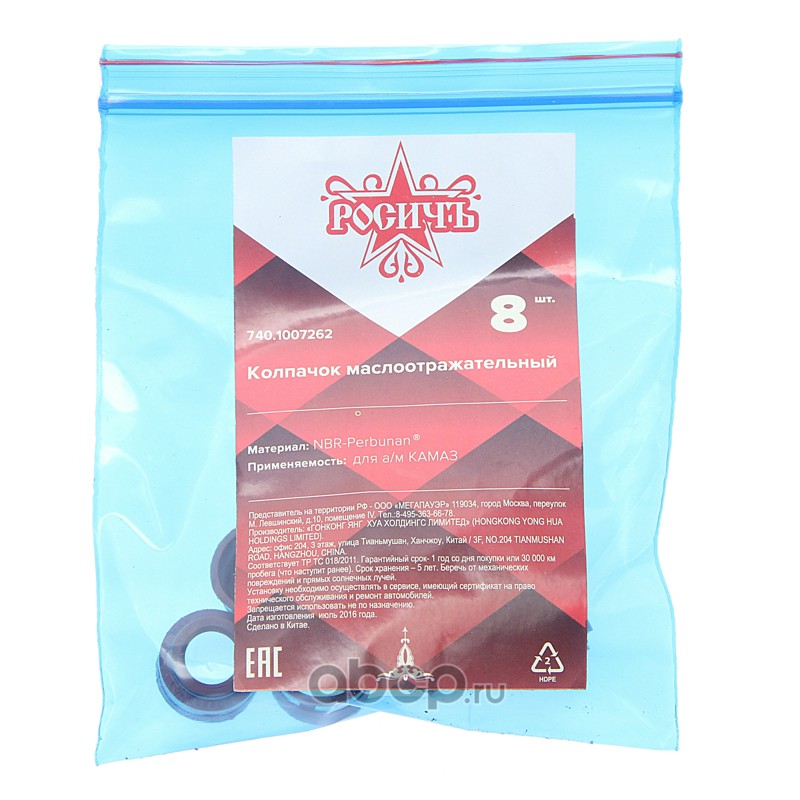 | РОСИЧЪ | 7401007262 | Колпачок КАМАЗ маслоотражательный комплект 8шт. РОСИЧЪ | ||