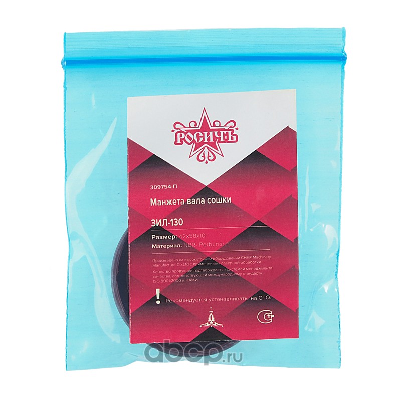 | РОСИЧЪ | 309754П | Сальник ЗИЛ-130 вала сошки 42х58х10 РОСИЧЪ | ||