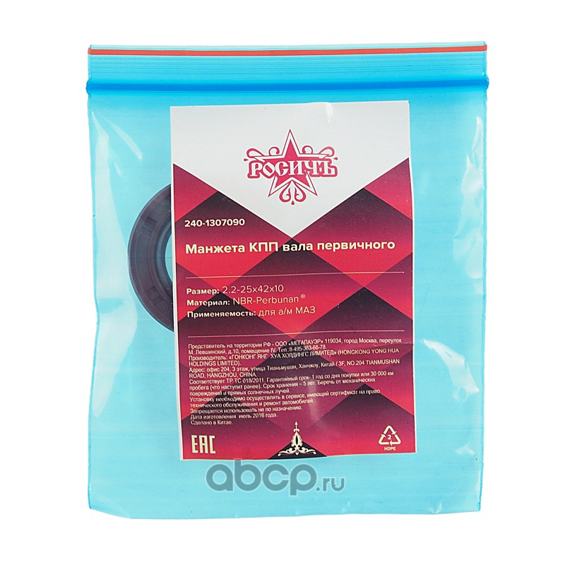 | РОСИЧЪ | 2401307090 | Сальник МАЗ КПП вала первичного 2.2-25х42х10 РОСИЧЪ | ||