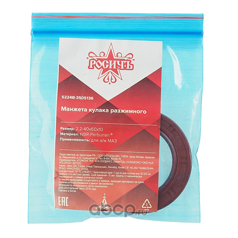 | РОСИЧЪ | 5224В3505136 | Сальник МАЗ кулака разжимного 2.2-40х60х10 РОСИЧЪ | ||