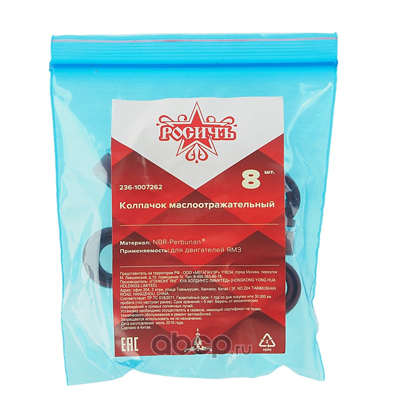 | РОСИЧЪ | 2361007262 | Колпачок ЯМЗ маслоотражательный комплект 8шт. РОСИЧЪ | ||