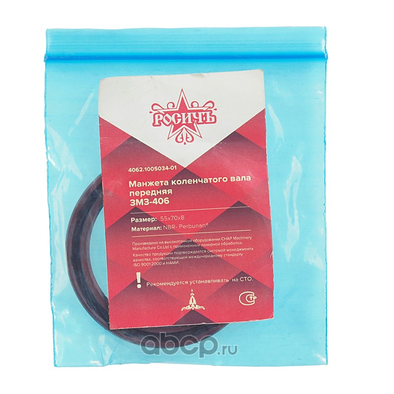 | РОСИЧЪ | 40621005034 | Сальник коленвала ЗМЗ-406 передний 55х70х8 РОСИЧЪ | ||