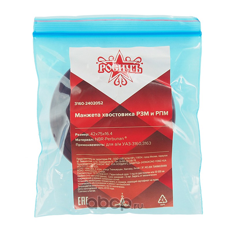 | РОСИЧЪ | 31602402052 | Сальник УАЗ-3160,3163 хвостовика РЗМ,РПМ 42х75х16.4 РОСИЧЪ | ||