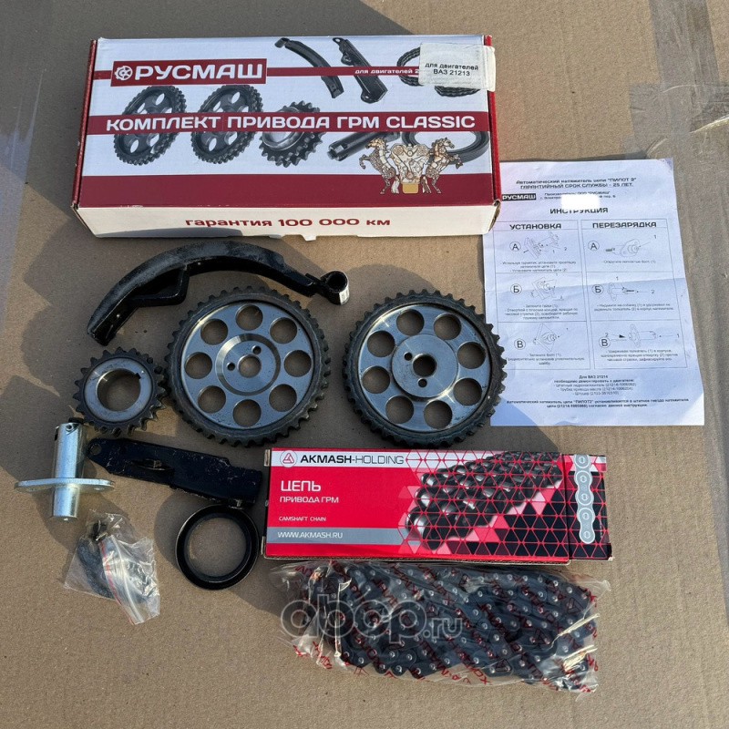 | РУСМАШ | 091006001 | Комплект ГРМ ВАЗ 03,06,2121 Classic ( двухрядная цепь) РУСМАШ | ||