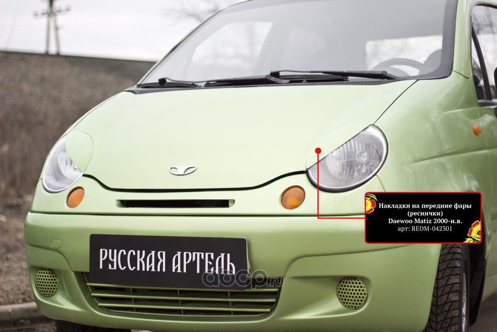 | Русская артель | REDM042301 | Накладки на передние фары (реснички) Daewoo Matiz 2000- | ||
