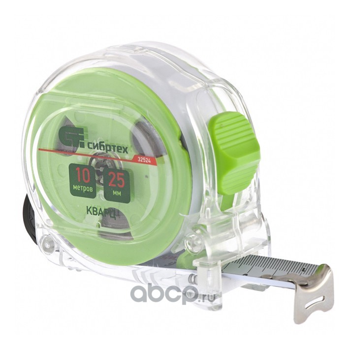 Рулетка Кварц,прозрачный корпус,амортизатор,10 м х 25 мм Сибртех