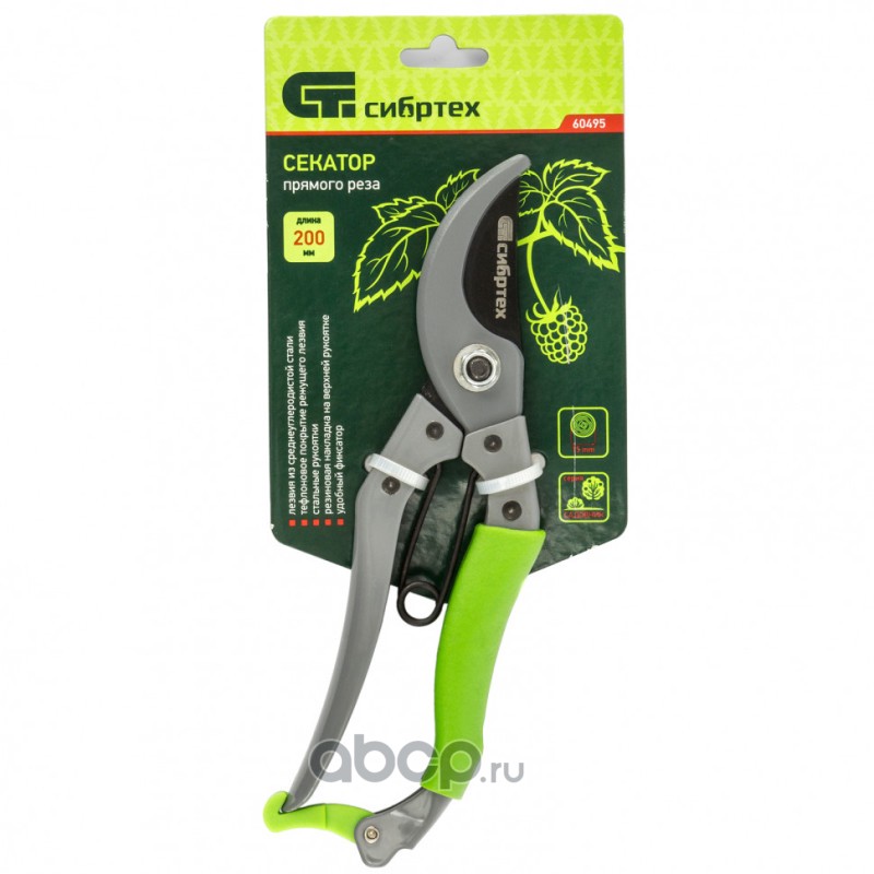 Секатор прямого реза, 200 мм, металлические рукоятки, верхняя в ПВХ - оболочке, Сибртех