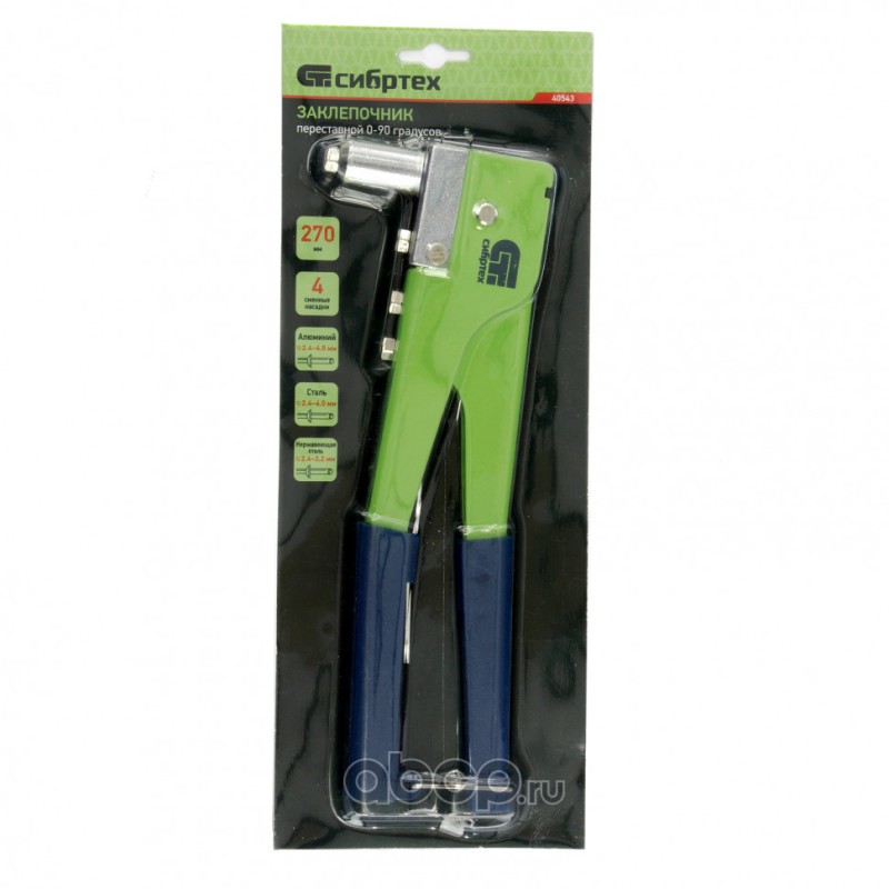 Заклепочник 270 мм, переставной 0-90 град, заклепки 2.4-3.2-4.0-4.8 мм Сибртех