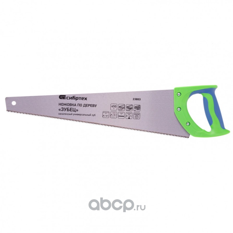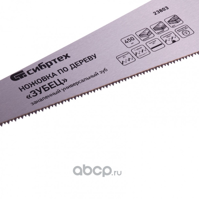 Ножовка по дереву "Зубец", 450 мм, 7-8 TPI, каленый зуб 2D, двухкомпонентная рукоятка Сибртех