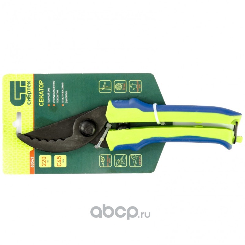 Секатор прямого реза, 220 мм, зубчатый, пластиковые рукоятки, Горизонт, Россия, Сибртех