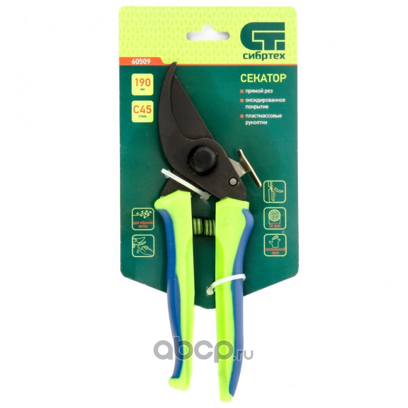Секатор прямого реза, 190 мм, пластиковые рукоятки, Горизонт, Россия, Сибртех