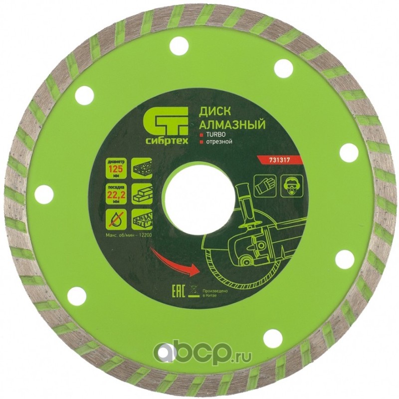 Диск алмазный, отрезной Turbo, 125 х 22.2 мм, сухая резка Сибртех