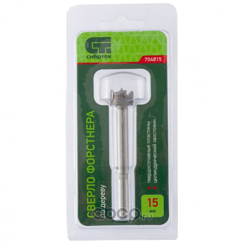 Сверло Форстнера по дереву, 15 мм, цилиндрический хвостовик Сибртех