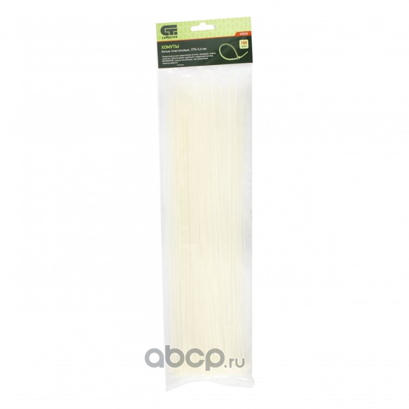 Хомуты, 370 x 3.6 мм, пластиковые, белые, 100 шт Сибртех