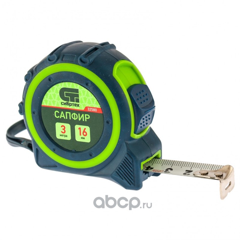 Рулетка Сапфир,двухкомпонентный корпус,3 м х 16 мм Сибртех
