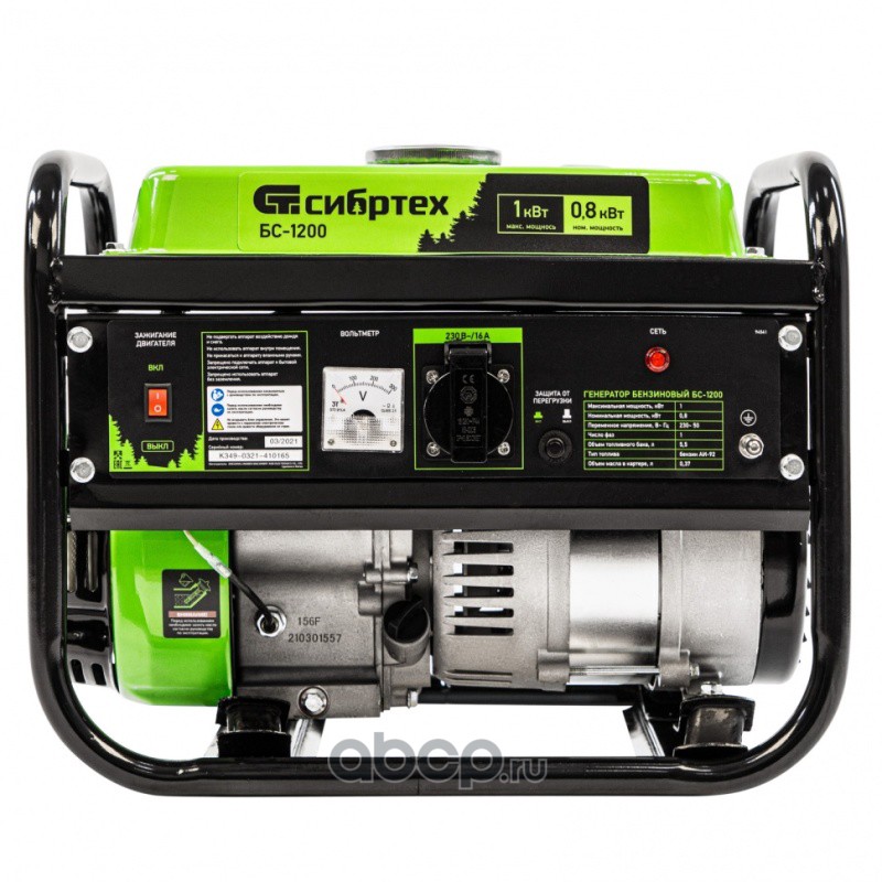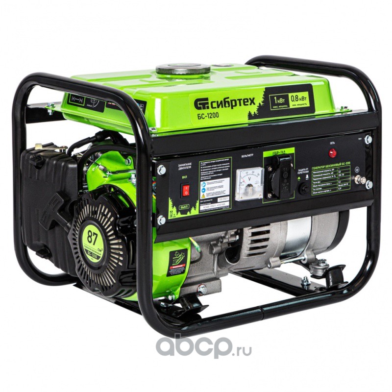 Генератор бензиновый БС-1200, 1 кВт, 230 В, четырехтактный, 5.5 л, ручной стартер Сибртех
