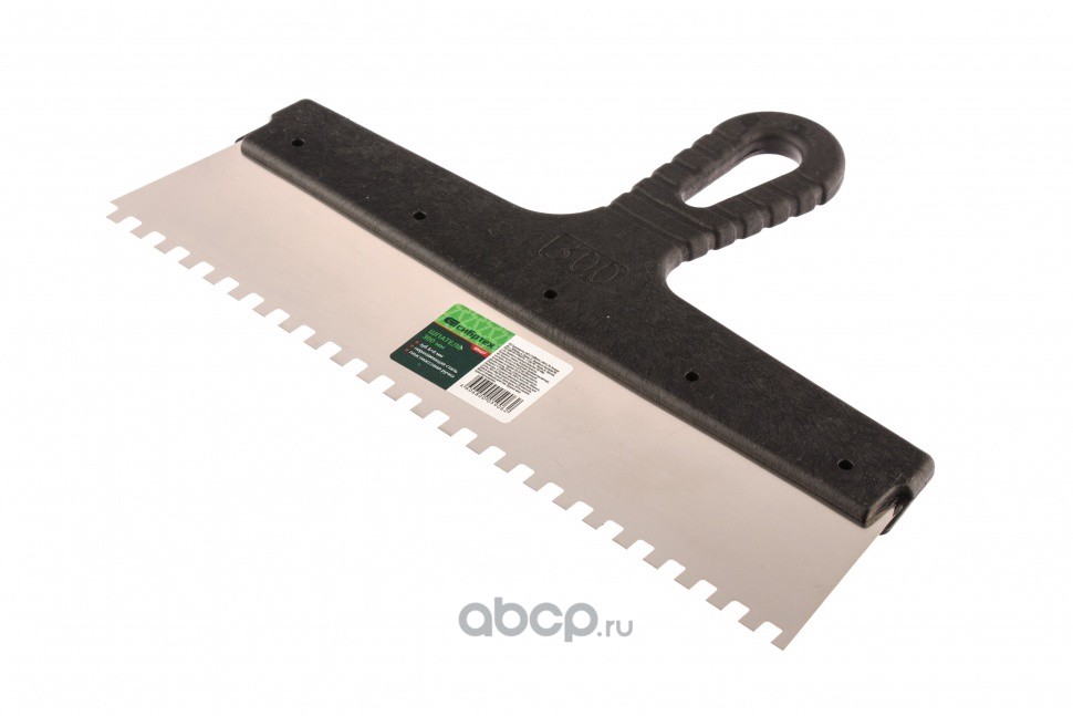 Шпатель из нержавеющей стали, 300 мм, зуб 6 х 6 мм, пластмассовая ручка Сибртех