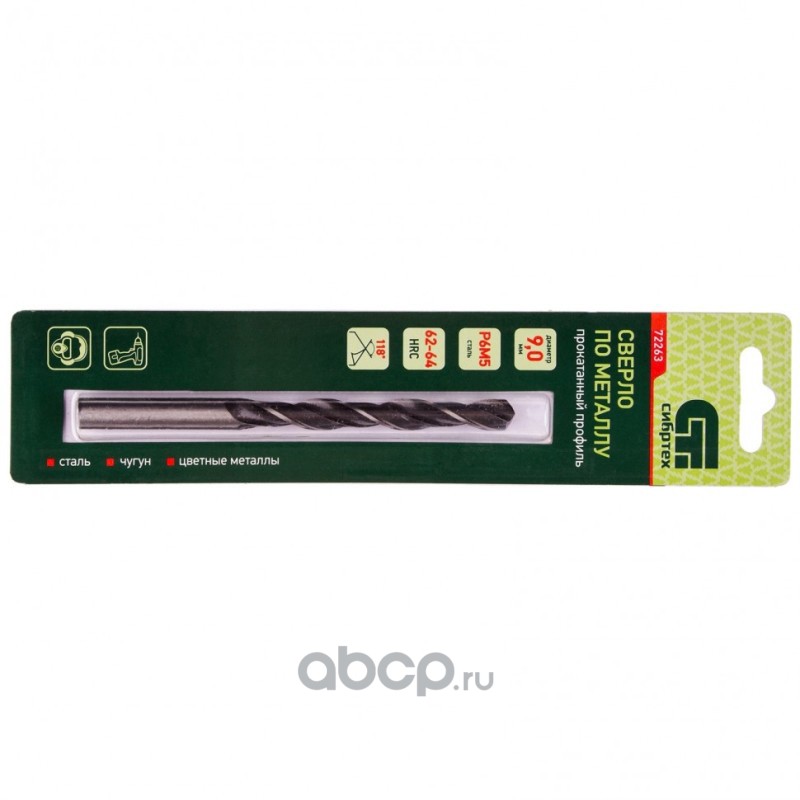 Сверло по металлу, 9 мм, Р6М5 Сибртех