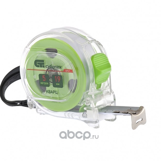Рулетка Кварц,прозрачный корпус,амортизатор,5 м х 19 мм Сибртех