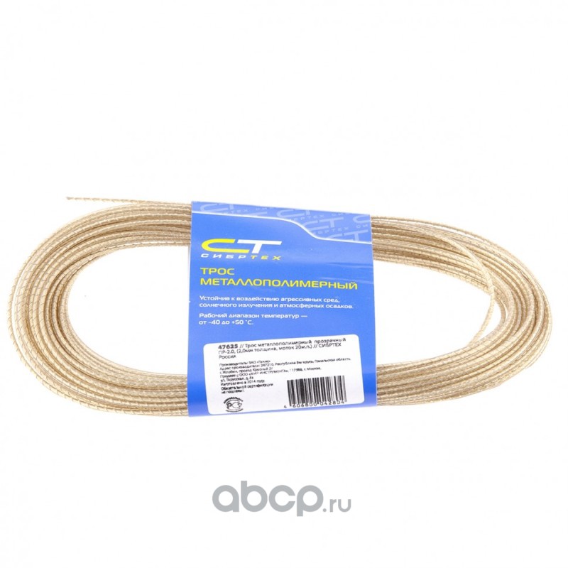 Трос металлополимерный прозрачный ПР-3.0, толщина 3.0 мм, моток 20 метров Россия Сибртех