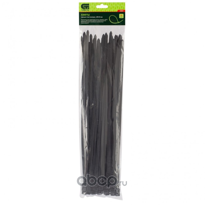 Хомуты, 400 х 8 мм, пластиковые, черные, 50 шт Сибртех