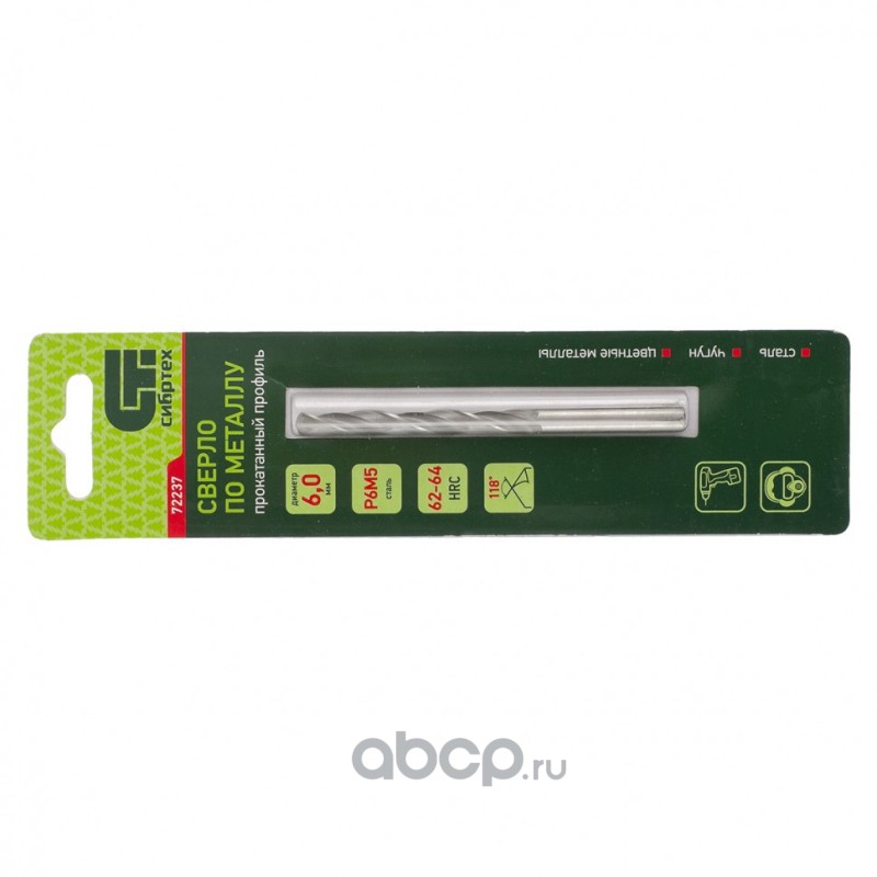 Сверло по металлу, 6 мм, Р6М5 Сибртех
