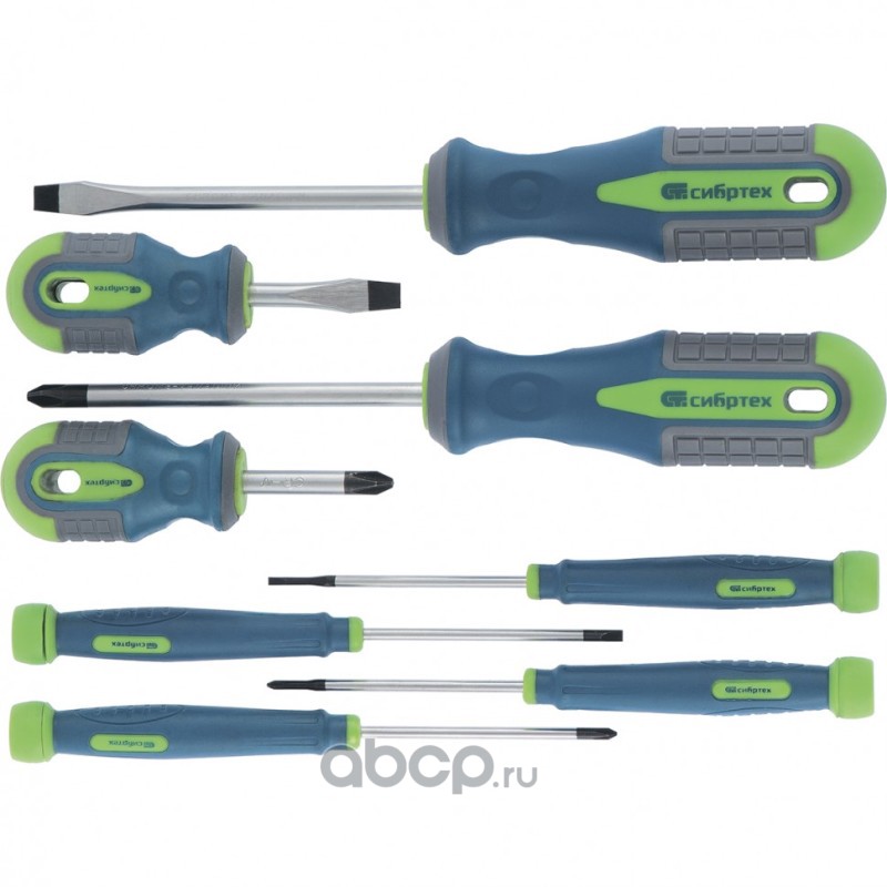 Набор отверток универсальный, CrV, трехкомпонентные рукоятки, 8 предметов Сибртех