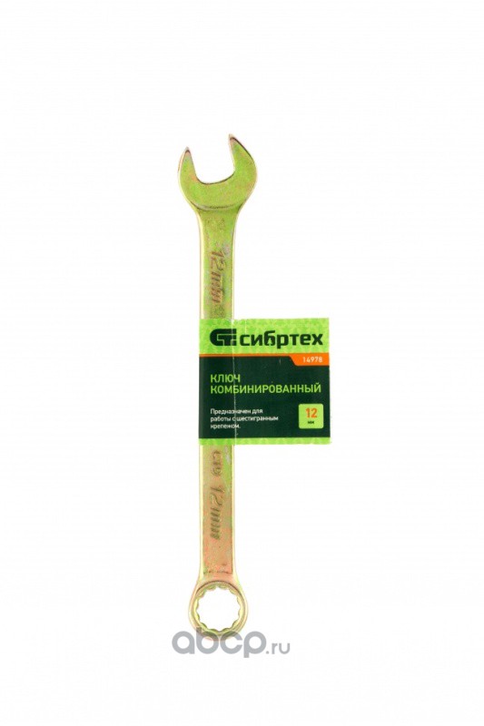Ключ комбинированный, 12 мм, желтый цинк Сибртех