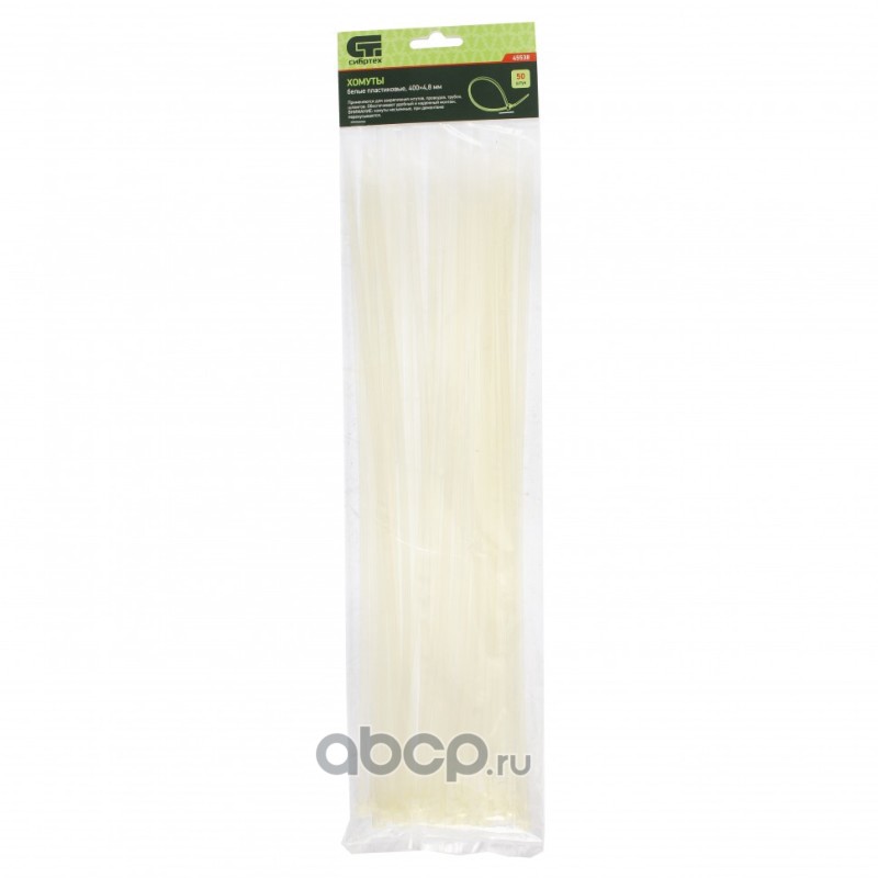Хомуты, 400 x 4.8 мм, пластиковые, белые, 50 шт Сибртех
