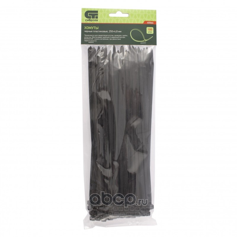 Хомуты, 250 x 4.8 мм, пластиковые, черные, 100 шт Сибртех