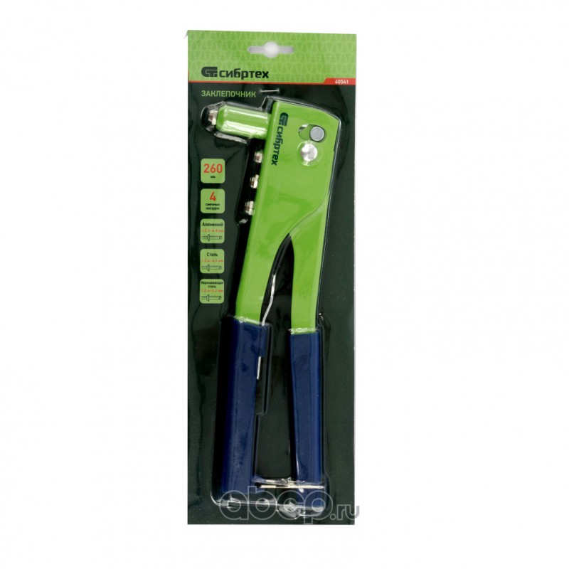 Заклепочник 260 мм, заклепки 2.4-3.2-4.0-4.8 мм Сибртех