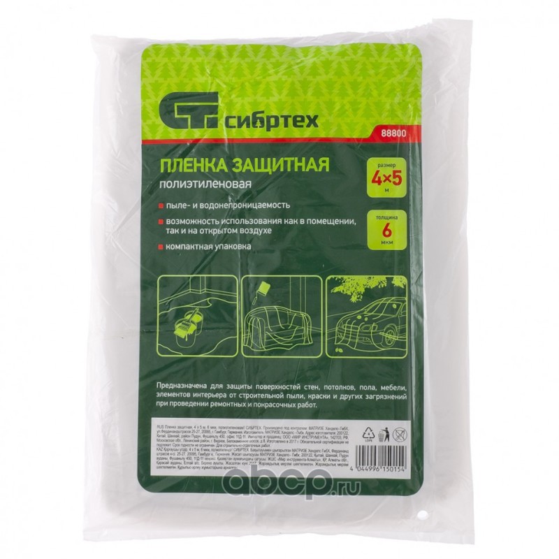 Пленка защитная, 4 х 5 м, 6 мкм, полиэтиленовая Сибртех