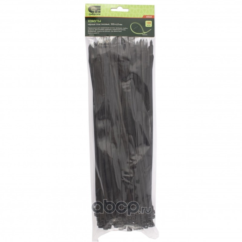 Хомуты, 300 x 4.8 мм, пластиковые, черные, 100 шт Сибртех