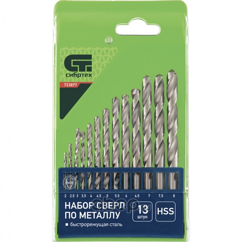 Набор сверл по металлу, 2-8 мм, (через 0.5 мм), HSS, 13 шт, пластиковая коробка, цилиндрический хвостовик Сибртех