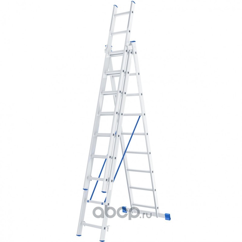Лестница, 3 х 9 ступеней, алюминиевая, трехсекционная, Россия, Сибртех