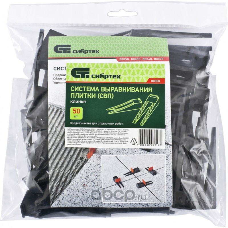 Система выравнивания плитки СВП, клинья, 50 шт в пакете Сибртех