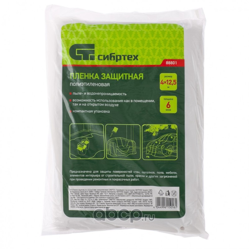 Пленка защитная, 4 х 12.5 м, 6 мкм, полиэтиленовая Сибртех