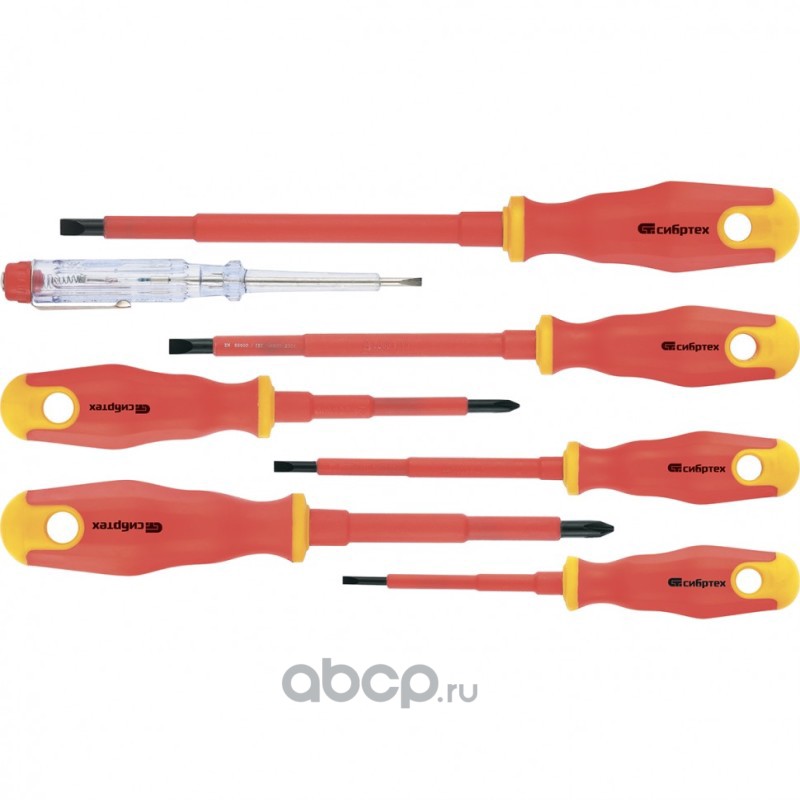 Набор отверток диэлектрических до 1000 В, 7 шт, тестер, CrV, двухкомпонентные рукоятки Сибртех