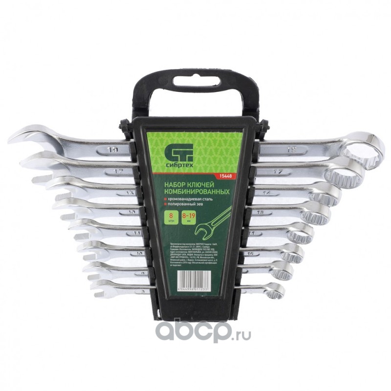 Набор ключей комбинированных, 8-19 мм, CrV, 8 шт Сибртех