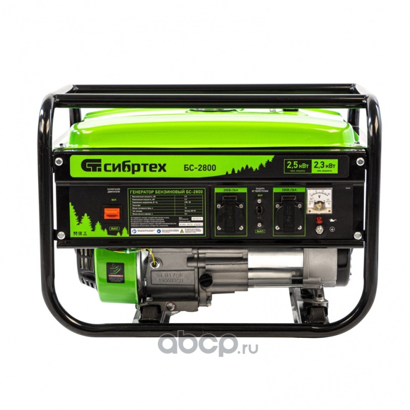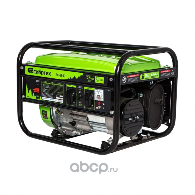 Генератор бензиновый БС-2800, 2.5 кВт, 230В, четырехтактный, 15 л, ручной стартер Сибртех