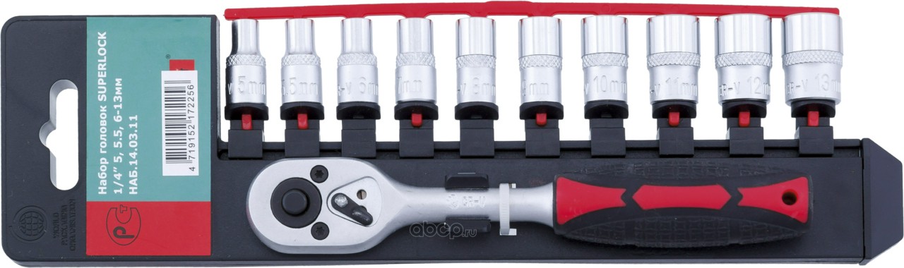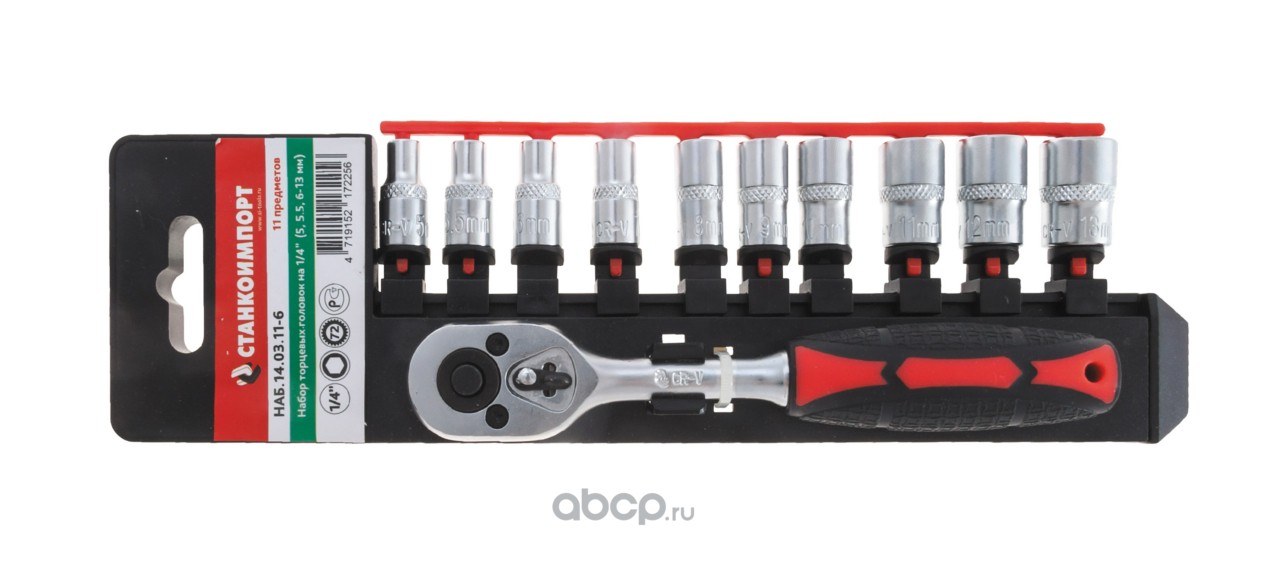| Станкоимпорт | НАБ1403116 | НАБ.14.03.11-6 набор торцевых головок с трещоткой на 1/4"" (5-13 мм) | ||