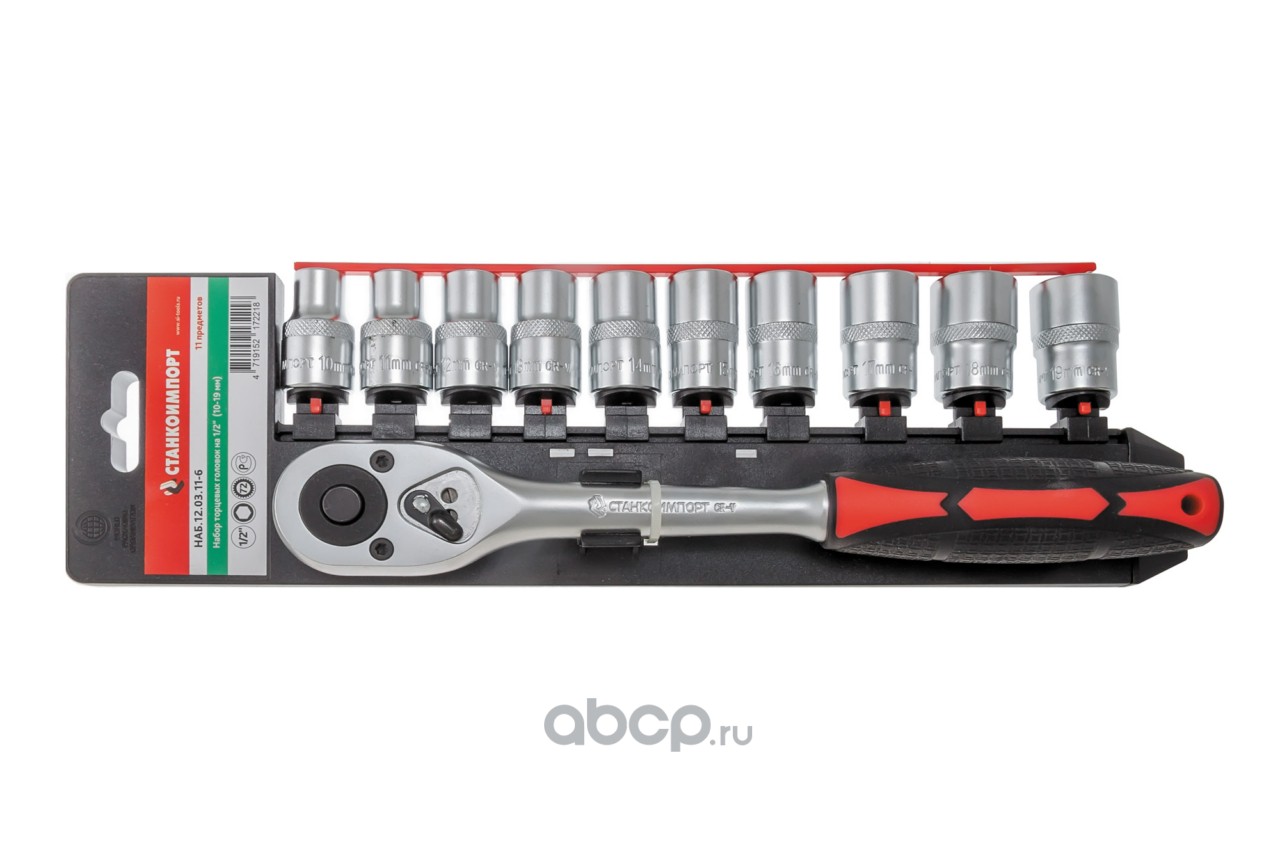 | Станкоимпорт | НАБ1203116 | НАБ.12.03.11-6 набор торцевых головок с трещоткой на 1/2"" (10-19 мм) | ||