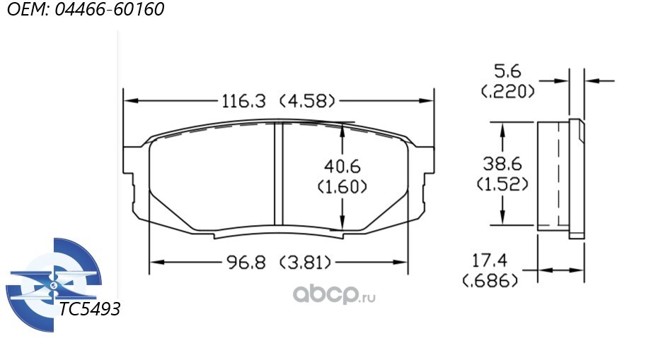 ТехноСити TC5493 Колодки тормозные дисковые, комплект задние