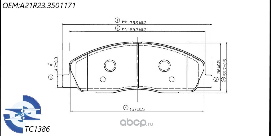 ТехноСити TC1386 Колодки тормозные дисковые, комплект передние