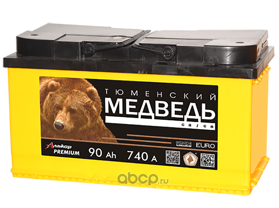 | Тюменский медведь | 4607175654197 | Батарея аккумуляторная 90А/ч 740А обратная полярн. стандартные (Европа) клеммы | ||