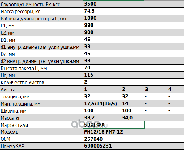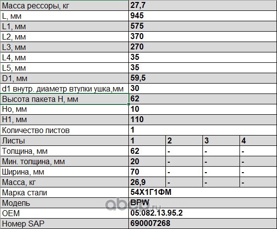 ЧУСОВСКАЯ РЕССОРА OMK690003237