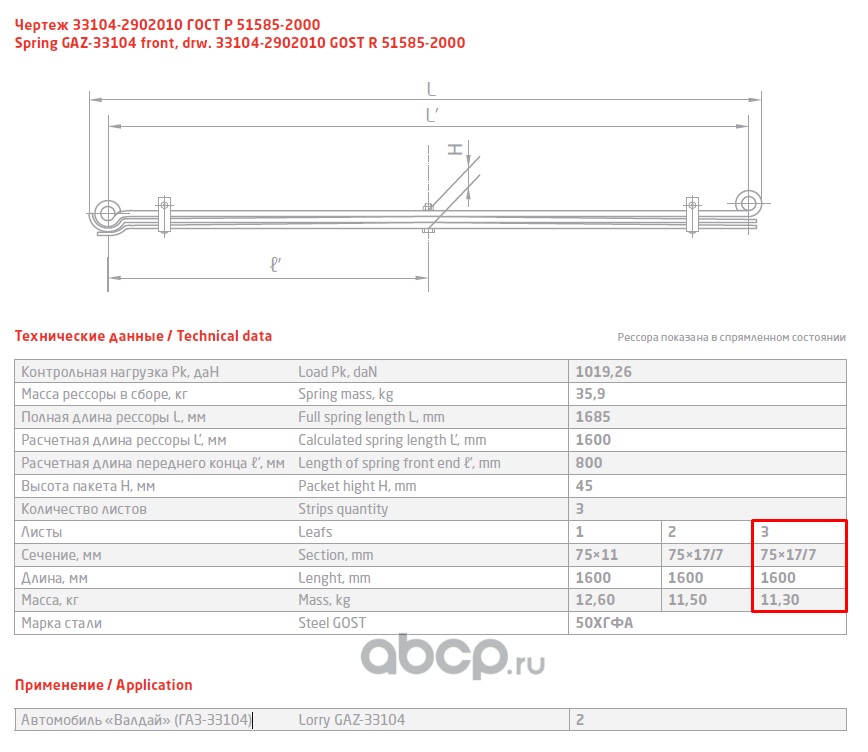 ЧУСОВСКАЯ РЕССОРА 690000455 Рессора передняя для ГАЗ 33104 Валдай, Газон Next 3 листа