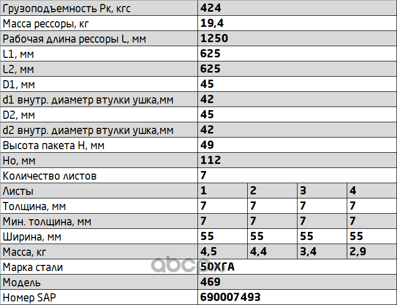 ЧУСОВСКАЯ РЕССОРА 690000692 Полурессора для Тонар, аналог 4533169708 2 листа